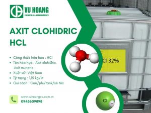 Axit HCl 32%, còn gọi là axit muriatic hoặc axit muối, là dung dịch nước của hydro clorua có công thức hóa học HCl. Đây là một axit mạnh có tính ăn mòn và độc hại cao. Axit HCl có nhiều ứng dụng trong nhiều ngành công nghiệp khác nhau và còn được dùng trong các thí nghiệm hóa học.