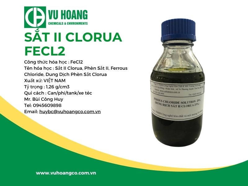Dung dịch sắt clorua (FeCl2) là hợp chất quan trọng có nhiều ứng dụng trong công nghiệp xử lý nước thải và sản xuất. Viết bài này chúng ta đã tìm hiểu về tính chất, ứng dụng và cách bảo quản dung dịch sắt clorua. Nếu bạn có nhu cầu sử dụng hoặc mua dung dịch sắt clorua hãy liên hệ với Vietchem – địa chỉ uy tín đáp ứng nhu cầu của bạn.
