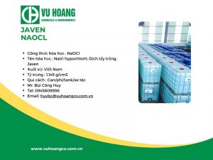 Hóa chất Javen hay còn gọi là javen NaClO, Giaven, Javel, Zaven, có tên khoa học là Natri Hypochlorite, có công thức hóa học là NaClO hoặc NaOCl. Đây là dung dịch lỏng có nồng độ khoảng 10% ± 2%, màu vàng nhạt, có mùi hơi khó chịu. Điểm sôi của hóa chất này là…