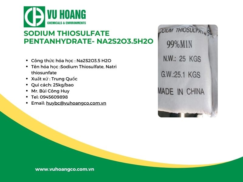 Natri thiosulfate, còn được gọi là natri thiosulfate pentahydrat, là một hợp chất vô cơ quan trọng trong nhiều lĩnh vực công nghiệp và y học. Nó có công thức hóa học Na2S2O3.5H2O và được sử dụng phổ biến trong xử lý nước thải, sản xuất dược phẩm và các ứng dụng chuyên dụng khác. Bài viết này sẽ cung cấp thông tin chi tiết về natri thiosulfate, bao gồm các tính chất vật lý và hóa học, sản xuất, ứng dụng và các biện pháp an toàn khi sử dụng.