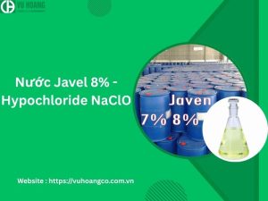 Nước Javel 8% – Hypochloride NaClO. Sản phẩm Natri Hypochlorite hay gọi tắt là Javen 8%. Được sử dụng để loại bỏ màu, nấm mốc, mực và dầu cây khỏi các mặt hàng vải. Nó cũng được sử dụng để làm trắng các sản phẩm men gốm. Javen chủ yếu được sử dụng trong quá trình khử trùng, làm sạch nguồn nước sinh hoạt. Cũng như tiến hành khử trùng tại các khu vực như nhà ở, bệnh viện, nhà vệ sinh và hóa chất hồ bơi.