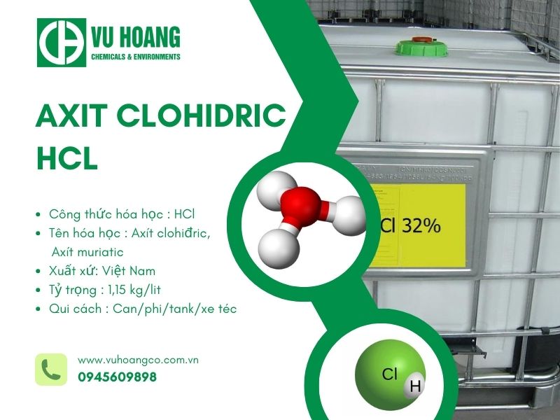 - Axit clohydric HCl 35% là một axit vô cơ mạnh, có công thức phân tử HCl.