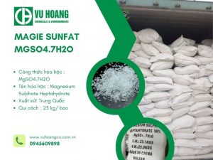 Magiê Sulfate MgSO4.7H2O hay còn gọi là Muối Epsom là một loại muối hydrat có công thức hóa học MgSO4.7H2O, bao gồm các ion magie Mg2+ và ion sunfat SO2−4. Muối Magiê Sulphate MgSO4.7H2O có nhiều ứng dụng trong y học, nông nghiệp và công nghiệp. Nó được đóng gói tiêu chuẩn trong túi lưới 25kg và nên được bảo quản ở nơi khô ráo, thoáng mát.